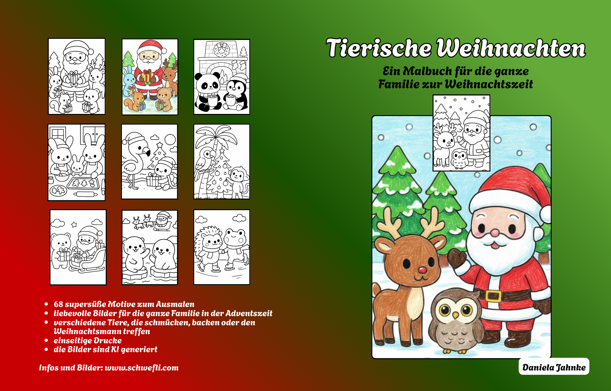 Die Bilder in einigen Malbüchern sind mit unterschiedlichen KIs erstellt, um auch den Filzstift- und Gel Pen-Fans in einem Buch Bilder zu bieten. Ich selbst nutze gern, worauf ich gerade Lust habe und möchte mich nicht auf Buntstifte beschränken.
